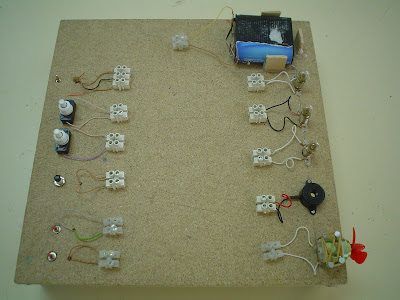 Los alumnos de Taller Tecnológico de 2º de ESO han fabricado un tablero de entrenamiento eléctrico de corriente continua (C.C.). En él han insertado diversos receptores y elementos de maniobra para poder montar de manera rápida y flexible multitud de circuitos eléctricos.